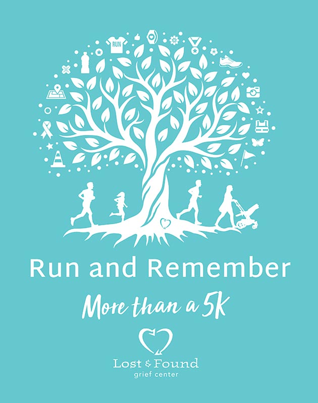 Each year Lost & Found Grief Center hosts a 5K and memorial event to bring our community together to commemorate the memory of loved ones who have died. Run and Remember is more than a 5K. Join us for a walk through the memorial garden, to honor the lives of those we have lost. Float a message to your loved one with our new helium SmileCloud machine.