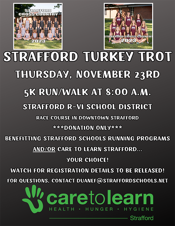 Donations only, with proceeds going to Strafford Schools Running programs and/or Care to Learn; Your Choice!